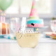 Una elegante copa de vino sin tallo para brindar y celebrar al graduado. "Graduado" está escrito en un guión moderno de moda con una tapa de grado en la parte superior. Personaliza con su nombre.