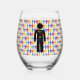 Esta impresionante copa de vino sin tallo muestra una silueta de un hombre con las palabras "Orgulloso de ser gay" en letras de arcoiris a través de su cuerpo. Un diseño inspirado por mi creencia apasionada de que todos son iguales sin importar cuál sea su sexualidad. El fondo está compuesto por hombres pequeños, cada uno a es un color diferente del arcoiris.