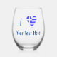 La copa de vino sin tallo personalizada usa un corazón funky de la bandera griega y tu texto agregado para leer I LOVE (TU TEXTO). El corazón de la Bandera de Grecia se usa en lugar de la palabra AMOR. ¿Qué es lo que amas? ¿Baklava? Puede personalizar este diseño en letras azules para hacer un divertido regalo de bienvenida para un bar, una reunión familiar o el Día de Oxi.