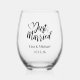 This wine glass is shown with a wedding Just Married print with sample custom names and date, so customize and change the sample text to yours with this template.