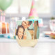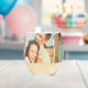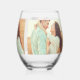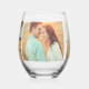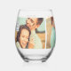 Crea un regalo perfecto para la madre del novio. Esta copa de vino sin tallo está lista para ser personalizada con tres de tus fotos favoritas y cuenta con una etiqueta blanca con el mensaje "Madre del Groom" escrito en ella con letras de escritura negra.