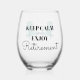 Diseñada con el tipo, esta copa de vino de retiro dice: "MANTENGA CALMA y DISFRUTE de la Jubilación". En la parte trasera hay una imagen de dos sillas Adirondack, con un área para un nombre. También puede quitar el nombre.