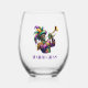 This wine glass is shown in a festive Mardi Gras musician print.