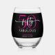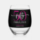 Modern and chic, this birthday stemless wine glass combines classic black and white with accents of bright pink. Personalize it with a name and date. Its minimal design is a simple and fun design to celebrate the milestone birthday, because you're fifty and fabulous! Created by Simply Farmhouse Press.