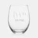 Monograma de guión elegante Sra. Boda Stemless Wine Glass