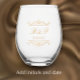 Crea una hermosa copa personalizada con mi diseño original de remolino dorado. Solo encontrarás este diseño dibujado a mano en mi tienda. Los remolinos caprichosos están superpuestos con un gradiente dorado falso. Dos corazones entrelazados con volutas radiantes crean un acento romántico. Dibujé este diseño en mi tableta. Agrega las iniciales de la pareja y la fecha de la boda o aniversario para una copa conmemorativa con monograma sofisticado. La elegante copa de vino moderna dorada sin tallo agregará belleza a la decoración de tu mesa. Esta copa elegante sería perfecta para una recepción de boda, una fiesta de despedida de soltera, una fiesta de compromiso, una cena de ensayo o incluso una fiesta de aniversario de bodas de oro número 50. Ver mi colección para encontrar platos, servilletas y favores a juego.