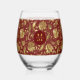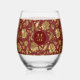 Vaso De Vino Monograma marrón rojo y dorado de damasco floral