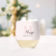 Vaso De Vino Monograma mínimo inicial y nombre Pastel rosa