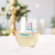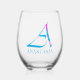 La obra de arte muestra la letra del alfabeto "A" en una letra de escritura artística de un diseño abstracto colorido - extraída de una foto de plantas de primavera capturadas usando una técnica especial de cámara, junto con la tipografía de personalizable para nombre u otra personalización en fuente azul. Personalice esta copa de vino sin tallo monogramada añadiendo el nombre o las palabras de su elección para que se adapten mejor a su propósito o evento. Para solicitudes o preguntas especiales, póngase en contacto con el artista en wafadahdalcreates@gmail.com. © Wafa Y. Dahdal - Reservados todos los derechos.