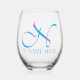 La obra de arte muestra la letra del alfabeto "N" en una letra de escritura artística de un diseño abstracto colorido - extraída de una foto de plantas de primavera capturadas usando una técnica especial de cámara, junto con la tipografía de personalizable para nombre u otra personalización en fuente azul. Personalice esta copa de vino sin tallo monogramada añadiendo el nombre o las palabras de su elección para que se adapten mejor a su propósito o evento. Para solicitudes o preguntas especiales, póngase en contacto con el artista en wafadahdalcreates@gmail.com. © Wafa Y. Dahdal - Reservados todos los derechos.