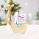 La obra de arte muestra la letra del alfabeto "T" en una letra de escritura artística de un diseño abstracto colorido - extraída de una foto de plantas de primavera capturadas usando una técnica especial de cámara, junto con la tipografía de personalizable para nombre u otra personalización en fuente azul. Personalice esta copa de vino sin tallo monogramada añadiendo el nombre o las palabras de su elección para que se adapten mejor a su propósito o evento. Para solicitudes o preguntas especiales, póngase en contacto con el artista en wafadahdalcreates@gmail.com. © Wafa Y. Dahdal - Reservados todos los derechos.