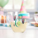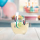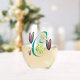 Un vaso tropical con un alfabeto impreso con flores de monstera.