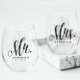 Vaso De Vino Mr. and Mrs. script recién casado negro personaliz