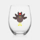 Esta impresionante copa de vino sin tallo tiene un personalizado gracioso de un pavo Navidad con grandes ojos negros, un pequeño pico amarillo y plumas de cola pegadas. Los pies se encuentran en direcciones opuestas, lo que hace que el pavo parezca torpe. El pavo lleva un sombrero de Santa Claus rojo y blanco y está listo para los Navidades.