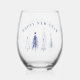 Esta elegante copa de vino sin tallo le dará un toque de alegría festiva a sus reuniones de vacaciones. Su diseño es sencillo y elegante, con pinos azules y un mensaje de "Feliz Navidad".