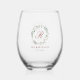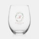 gafas de vino diseñadas por personalizados para la temporada de vacaciones, con flor de berry de invierno con monograma personalizado de nombre familiar.