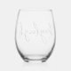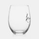 ¡Comienza la fiesta con estas hermosas copas de vino sin tallo personalizadas que son perfectas para fiestas de soltera, damas de honor o cualquier ocasión! El diseño presenta un nombre en tipografía cursiva de estilo manuscrito negro.
