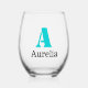 Vaso De Vino Nombre negro inicial turquesa elegante | Moderno