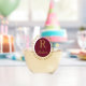 Se muestra el nombre personalizado de la copa de vino con una letra de corona dorada del ganador, con una muestra inicial y un nombre. Fondo del color del vino en el círculo. Personalizar este elemento y cambia el nombre del ejemplo al tuyo.