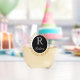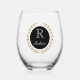 Se muestra el nombre personalizado de la copa de vino con una letra de corona dorada del ganador, con una muestra inicial y un nombre. Fondo negro en el círculo. Personalizar este elemento y cambia el nombre del ejemplo al tuyo.