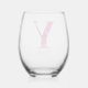El diseño presenta la letra del alfabeto "Y" en un patrón floral rosado derivado de una fotografía de flores primaverales, junto con la tipografía del guión de personalizable para nombre u otra personalización. Personalice esta copa de vino sin tallo monogramada añadiendo el nombre o las palabras de su elección para que se adapten mejor a su propósito o evento. Para solicitudes o preguntas especiales, póngase en contacto con el artista en wafadahdalcreates@gmail.com. © Wafa Y. Dahdal - Reservados todos los derechos.