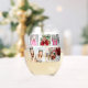 Multi Collage de fotos Modern Personalized Name Stemless Wine Glass presenta un collage de fotos de cinco de tus fotos favoritas. Personalizado con tu nombre en escritura negra moderna. Perfecto para cumpleaños, Navidades, ducha para bebés y más. Diseñado por ©Evco Studio www.zazzle.com/store/evcostudio