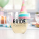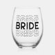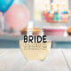 Esta copa de vino se muestra con una impresión de novia de boda.
