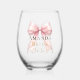 Celebra con estilo con esta elegante copa de vino para despedida de soltera. El diseño presenta un delicado lazo rosa sonrojado acentuado con perlas y tipografía sofisticada tonificada en dorado. Es un regalo conmemorativo perfecto para que la futura novia lo use durante su ducha nupcial o noche de chicas.