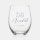 Heather Cumpleaños Personalizado 16, 18, 21, 30, 40, 50, 60, 70, 80, 90, 100 Número | Black Trendy Handwriter Name and Date Stemless Wine Glass