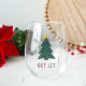 El árbol no es lo único que se enciende este año. Nuestra divertida copa de vino con temática de vacaciones incluye la cita en letras festivas rojas y verdes recortadas debajo de un ilustracion de árbol de Navidad.