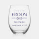 Esta copa de vino se muestra con un boda padre del Groom impreso con nombres personalizados de muestra y fecha, así que personalizar y cambia el texto de muestra a la suya con esta plantilla. Color del texto es Personalizar de la Marina en este elemento. Imprimir con licencia