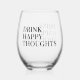 "¡Adúnete en el espíritu de alegría con cada sorbo! Esta elegante copa de vino cuenta con la fantástica cita "Pensamientos felices para tomar", que ha sido cuidadosamente diseñada para inspirar momentos de relajación. Ya sea que estés relajándote después de un largo día o celebrando los momentos especiales de la vida, deja que este vaso sea tu compañero para mejorar experiencias. Diseñado con cuidado y diseñado para elevar cualquier ocasión, es perfecto para los amantes del vino y para aquellos que aprecian las cosas más finas de la vida. Añada un toque de positividad a sus reuniones o disfrute de una dosis diaria de felicidad con esta deliciosa copa de vino. ¡Saludos a momentos alegres y sonrisas interminables!"