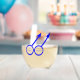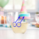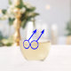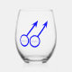 Esta impresionante copa de vino sin tallo está diseñada para hombres homosexuales. Presenta dos símbolos masculinos azules uno al lado del otro. Hay un texto azul personalizable dentro de cada uno de los símbolos para poner nombres.