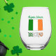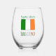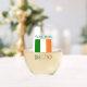 La copa de vino sin tallo personalizada cuenta con una vibrante bandera irlandesa en su icónica tricolor con IRELAND desplegada debajo. En la parte superior, un espacio para un nombre en letras verdes aporta un toque personal. Bonito regalo de bienvenida para un bar. Perfecto para las celebraciones de San Patricio.