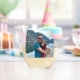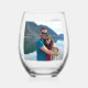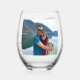 La foto de tu pareja favorita resalta la parte delantera y trasera de esta copa de vino sin tallo. Personalizado en la parte delantera y trasera con su texto personalizado.