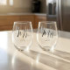 Personalizado 'Sr. y la Sra. Vidrio de Vino sin Stemless Boda De Guión Mínimo. Personalice con su apellido y fecha de boda debajo de "Mr. y a la Sra.' en elegantes letras de guiones. Hace un regalo perfecto para el aniversario de un boda, o para mantener y regalar a los recién casados.