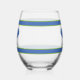 Una copa de vino muy divertida con remo cruzado de bola de picnic y coloridas rayas azules y verdes. Añade texto personalizado para personalizar. Cambiar fácilmente los colores. Hace un regalo perfecto para tu amigo, compañero de torneo, entrenador o a cualquiera que ame este increíble juego de pickleball.
