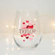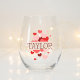 Esta copa de vino sin tallo monograma hace un encantador regalo de boda para su fiesta de boda o damas de honor. Diseño elegante y minimalista en tipografía moderna. La plantilla de nombre está configurada para que pueda realizar el personalizar con el nombre del destinatario. ¡Pida este elegante recuerdo para tu gran día ahora!