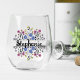 Esta copa de vino sin tallo monograma hace un encantador regalo de boda para su fiesta de boda o damas de honor. Diseño elegante y minimalista en tipografía moderna. La plantilla de nombre está configurada para que pueda realizar el personalizar con el nombre del destinatario. ¡Pida este elegante recuerdo para tu gran día ahora!