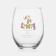 60th birthday party personalized with name and date stemless wine glass for your sixtieth birthday party celebration. The words "Let's Get Groovy" are custom designed using trending Retro Purple, Orange, and Green font Typography. Fun, classy and stylish!