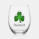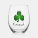 Shamrock Clover Design Stemless Wine Glass con texto de personalizable.