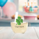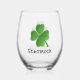 Shamrock Clover Design Stemless Wine Glass con texto de personalizable.