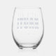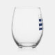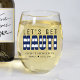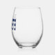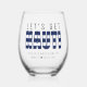 Vaso de vino a rayas azules y blancas "vamos a ser traviesos" para una fiesta de soltero / despedida de soltera. Personalízalo con tu propio texto.