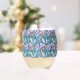 Diseño de vidrio de vino inmaculado y sin tallo, con rayas y mariposas de bonito. Gracias a Creative Fabrica por algunos de los elementos del diseño.