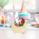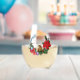 Un lindo ratón marrón en una corona navideña. Ornamentos, arcos rojos, poinsettias y celta azul para trabajar en una corona de Navidades