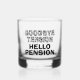 Adiós Tensión Hola Pensión regalo de retiro divertido Whiskey Glass. Diseño tipográfico de Guay para papá, marido, abuelo, tío, entrenador, amigo, jefe, profesor, hermano, compañero de trabajo, colega, etc. Personaliza con tu propio nombre y colores. Diseño de humor de oficina. Imprimir en dos lados.