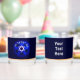Estrella de David de color claro sobre un fondo azul oscuro. El texto en hebreo dice: "Am Yisrael Chai" (¡El pueblo de Israel vive!). Personalizar añadiendo su propio texto en el reverso. Amalek siempre está con nosotros. En cada generación vienen a matarnos, pero el pueblo judío sobrevive. Luego vino Amalek y atacó a Israel en Refidim... (Éxodo 17:1-8) Recuerda lo que Amalek te hizo en la carretera, en tu salida de Egipto. Que se encontró contigo en el camino y cortó a los que se quedaban atrás, cuando estabas cansado y exhausto; no temía a G-d. Por lo tanto, debes borrar la memoria de Amalek de los cielos. No olvide. (Deuteronomio 25:17-19)