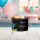 Un llamativo diseño boda con un colibrí esmeralda vívido encaramado entre las exuberantes hojas tropicales, todo envuelto en un fondo negro dramático con un elegante texto verde y blanco. Ideal para celebraciones exóticas, de destino o al aire libre.