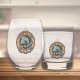 Insignia escudo del clan Kennedy rodeada por una correa y hebilla sobre el fondo del tartán. Texto personalizado en ambos lados.
