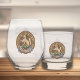 Insignia escudo del clan MacPherson rodeada por una correa y hebilla sobre el fondo del tartán. Texto personalizado en ambos lados.